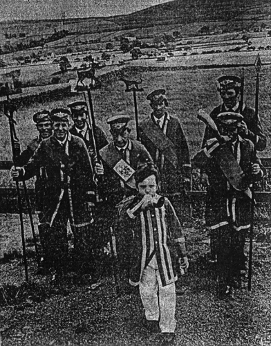 Foresters at the top of the village, passing Dawson House,1932.