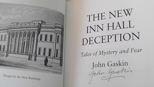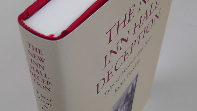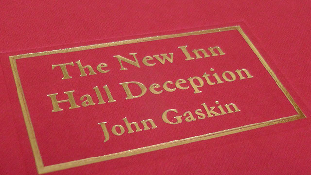 The New Inn Hall Deception is a sewn hardback book of 233 pages with silk ribbon marker, head and tailbands, gilt-stamped boards, and d/w. Limited to 380 signed copies.