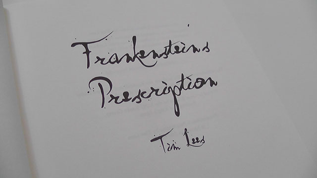 Frankenstein's Prescription is a sewn hardback of 277 pages, printed lithographically, with silk ribbon marker, head and tailbands, and d/w.