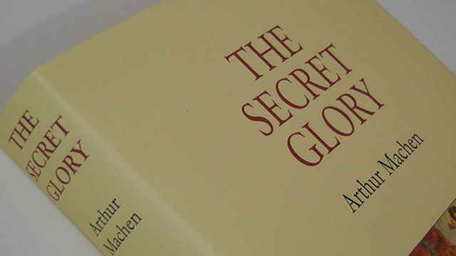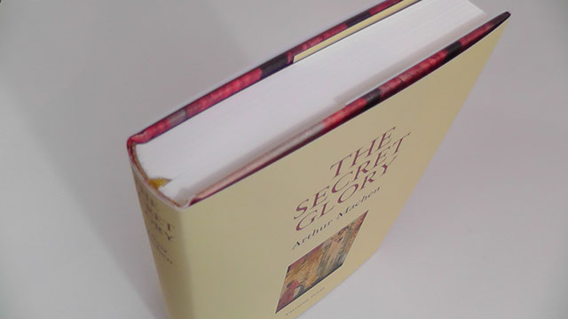 The Secret Glory is a sewn hardback book of 287pp, printed lithographically with silk ribbon marker, decorated boards, and head and tailbands.