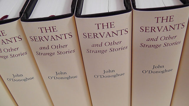 The Servants and Other Strange Stories is a sewn hardback book of 283pp, printed lithographically with silk ribbon marker, printed boards, and head and tailbands.