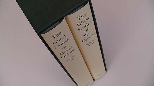 The Ghost Stories of Oliver Onions is published as two sewn hardbacks of 384+xi and 364 pages, printed lithographically, with head and tailbands, and d/w. In a slipcase.