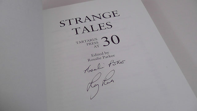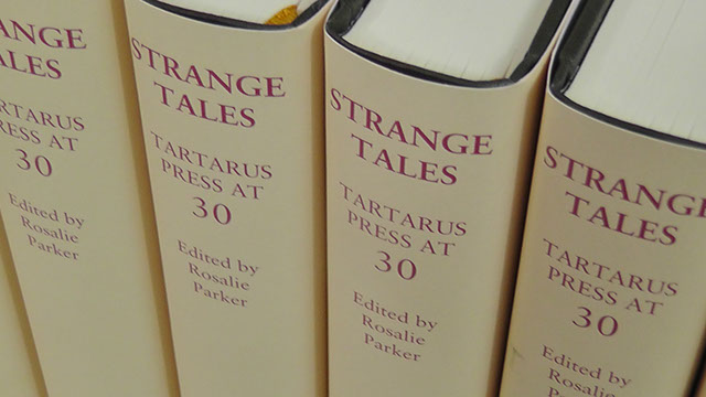 Strange Tales: Tartarus Press at 30 is a sewn hardback book of 284 pages with silk ribbon marker, printed boards, head and tailbands, and d/w.