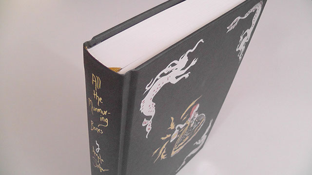 All the Murmuring Bones is a sewn hardback book of 391 pages with silk ribbon marker, head and tailbands, printed boards, and d/w.