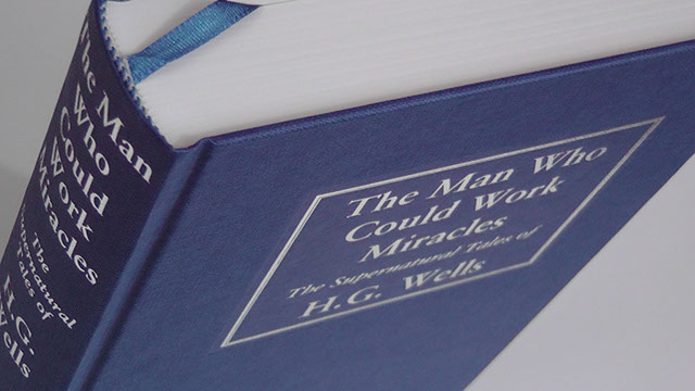The Man Who Could Work Miracles is a sewn hardback of 363+ xiv pages, printed lithographically, with silk ribbon marker, head and tailbands, and d/w.