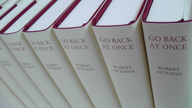 Go Back At Once is a sewn hardback of 362 + ix pages, printed lithographically, head and tailbands, and d/w.