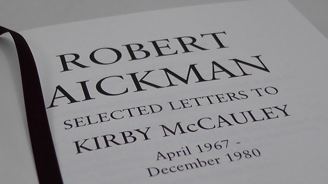 Robert Aickman: Selected letters to Kirby McCauley is a sewn hardback of 276 + vii pages, printed lithographically, head and tailbands, and d/w.