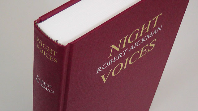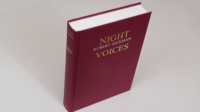 Night Voices is a sewn hardback of 316+ vii pages, printed lithographically, with silk ribbon marker, head and tailbands,
