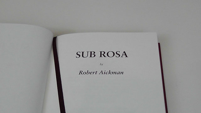 Sub Rosa is a sewn hardback of 288+ ix pages, printed lithographically, with silk ribbon marker, head and tailbands, and d/w.