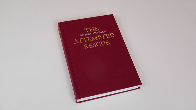 The Attempted Rescue is a sewn hardback of 245 + viii pages, printed lithographically, with silk ribbon marker, head and tailbands,