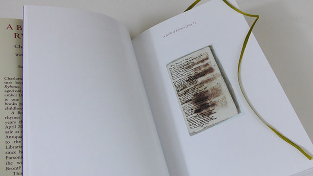 A Book of Ryhmes (the word rhymes is misspelt) was for many years thought to be lost, but in April 2022 it was announced as for sale at the New York International Antiquarian Book Fair. It was sold to the Friends of the National Libraries for $1.25 million, and has since been donated to the Brontë Parsonage Museum, which holds the world’s largest collection of Brontë manuscripts.