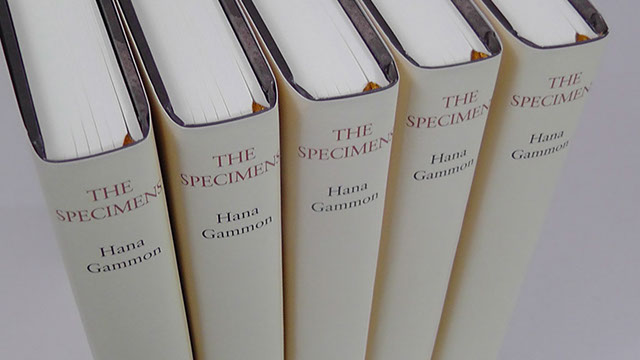 The Specimens is published as a sewn hardback of 250 pages, printed lithographically, with head and tailbands, and d/w.