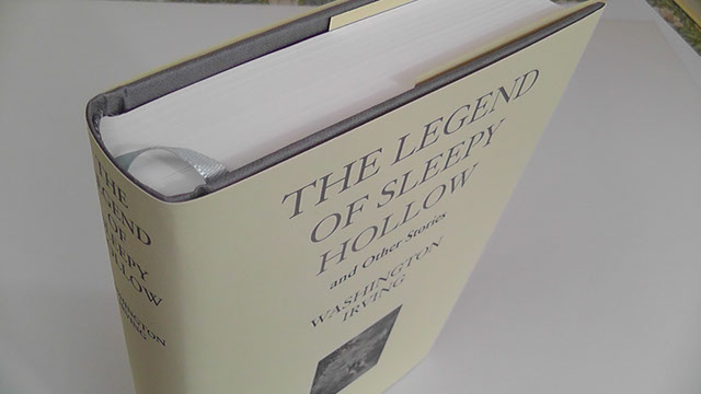 The Legend of Sleepy Hollow is a sewn hardback book of 404+ xi pages with silk ribbon marker, head and tailbands, and d/w.
