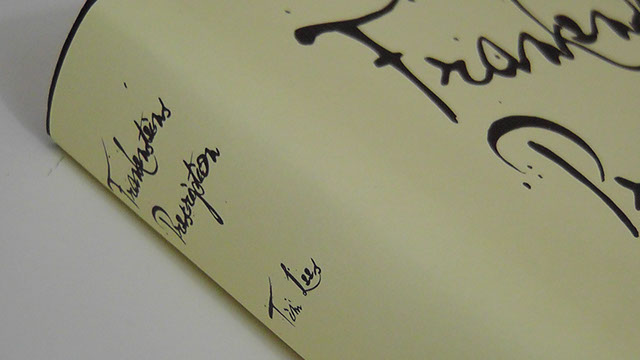 Frankenstein's Prescription is a sewn hardback of 277 pages, printed lithographically, with silk ribbon marker, head and tailbands, and d/w.