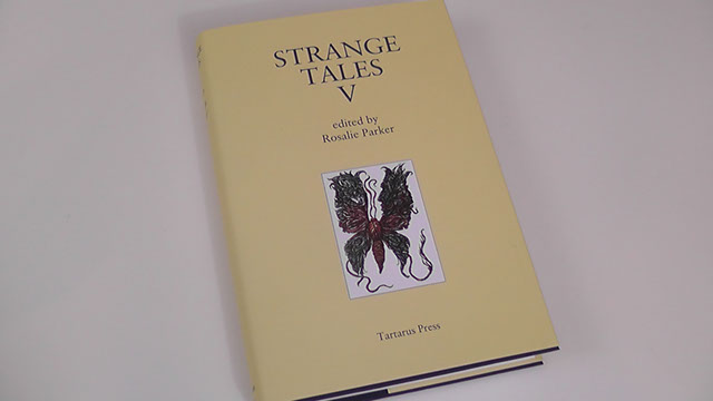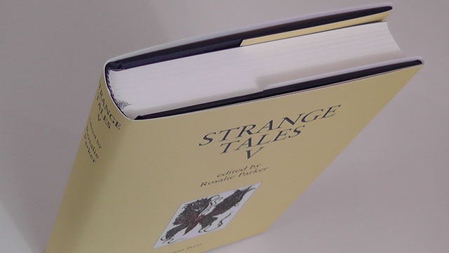 Strange Tales V is a sewn hardback book of 267 pages with silk ribbon marker, decorated boards, head and tailbands, and d/w.